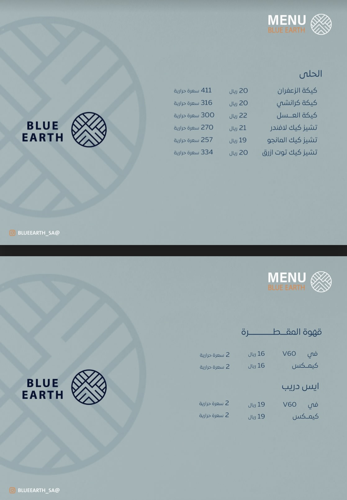 منيو بلو إيرث كافيه بالمدينة