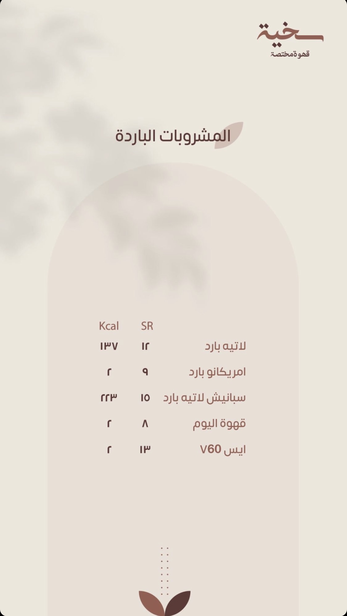 يوجد به أنواع القهوة المختصة الحارة والباردة