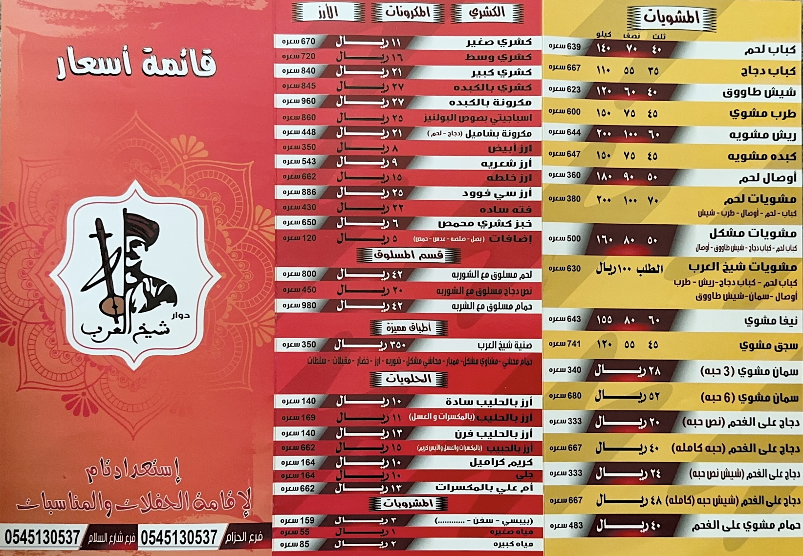 مطعم دوار شيخ العرب المدينة (السعر + المنيو + الفروع + آراء الناس)