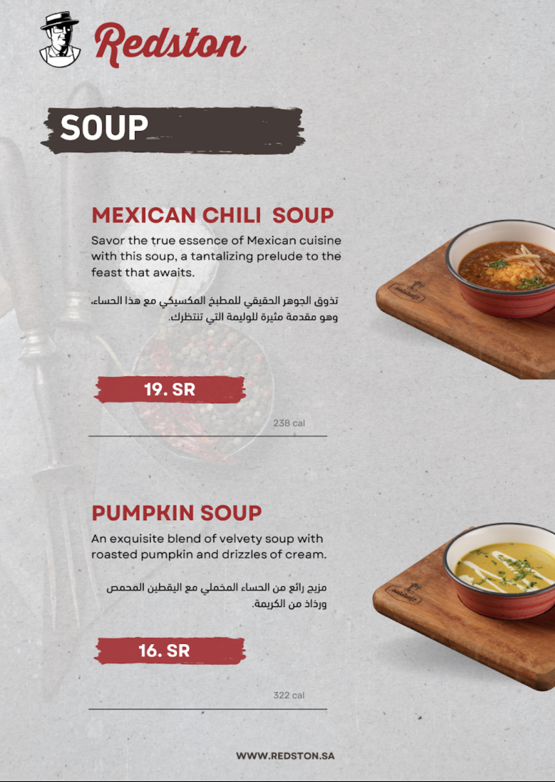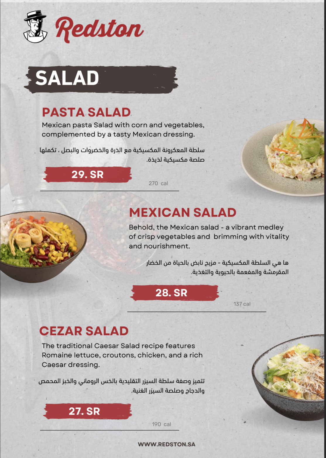 منيو مطعم ردستون بالمدينة