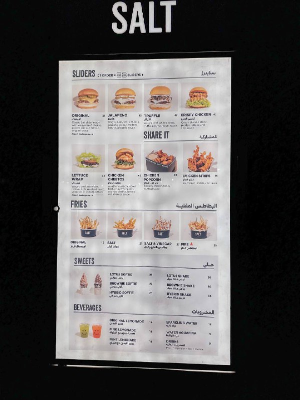 اول مرة اجرب هالمطعم وبإذن الله آخر مرة أقرب جمبه طلبت ولا شفت الاسعار قبل وادري انه غلط لكن ماتوقعت يتجاوز الطلب ٧٠ ريال وكثير عليه وانصدمت لما وصلت رسالة من البنك على ٤ سلايدر بحجم وجبة أطفال ماك ومن فود ترك يريته حتى مطعم طلعت الفاتورة ١٦٥ ريال مع بطاطس مقليه من الكيس مع العلم ان الكيس بالكامل من السوبر ماركت ب ١٢ ريال ٢ كيلو للامانة الأسعار مو فقط مبالغ فيها لكن مو طبيعية ولا تعقل سعر مطعم ٥ نجوم وهو برجر سلايدر من فود ترك حجمه مايشبع طفل حتى والمصيبة اني شفت حجاج كثير في قباء عند المطعم يتم استغلالهم وجهلهم بالأسعار وظنيت ان الأسعار معقولة لكن طلع مايخالف الله في نفسه ولا خلق الله