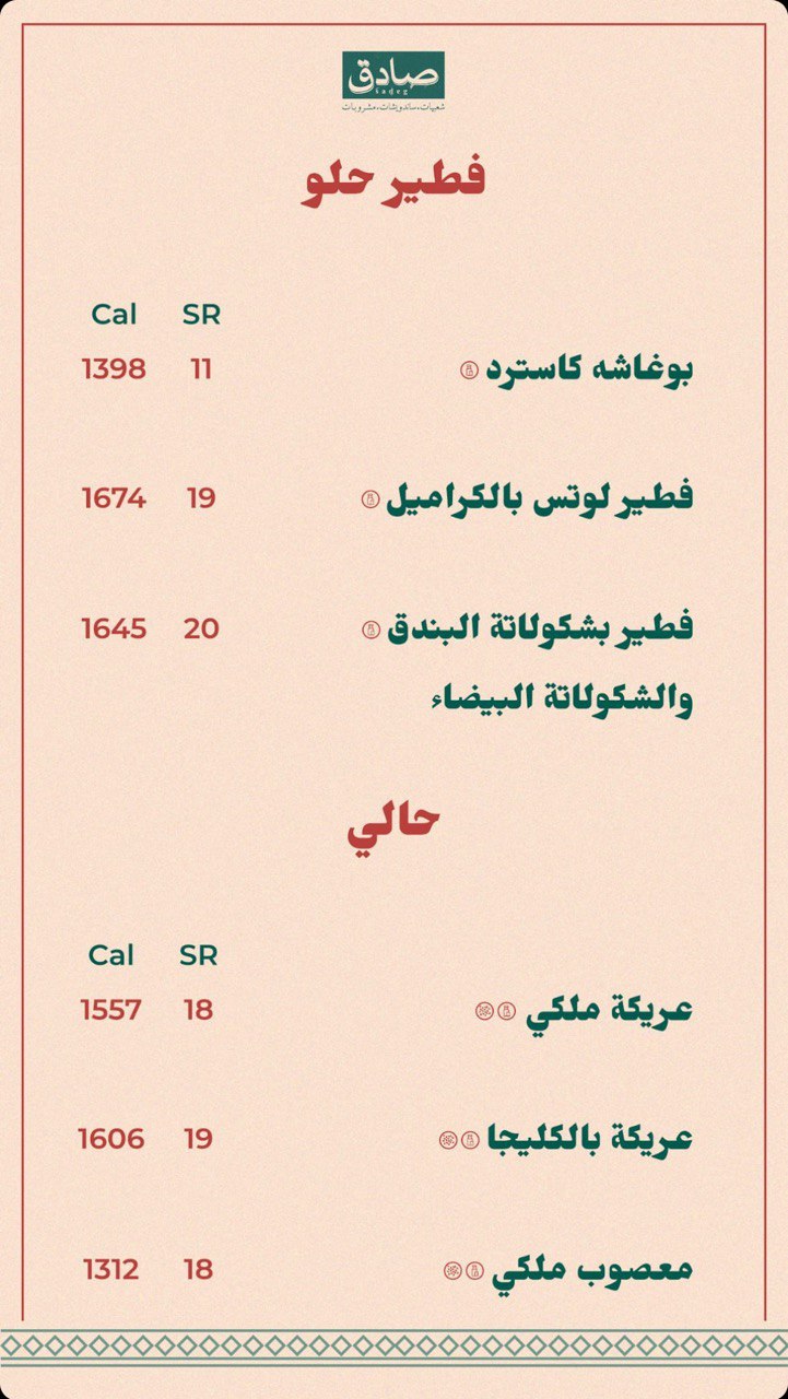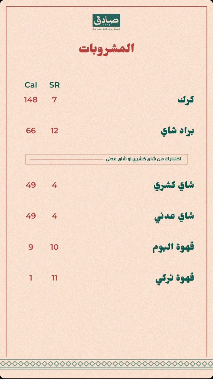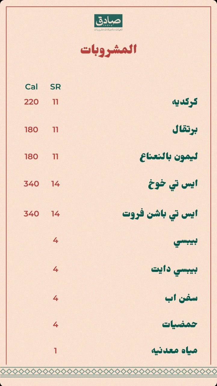 منيو مطعم صادق بالمدينة