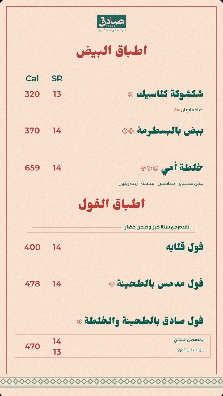 النوع: مطعم فطور يقدم المأكولات الشعبية السعودية والمصرية