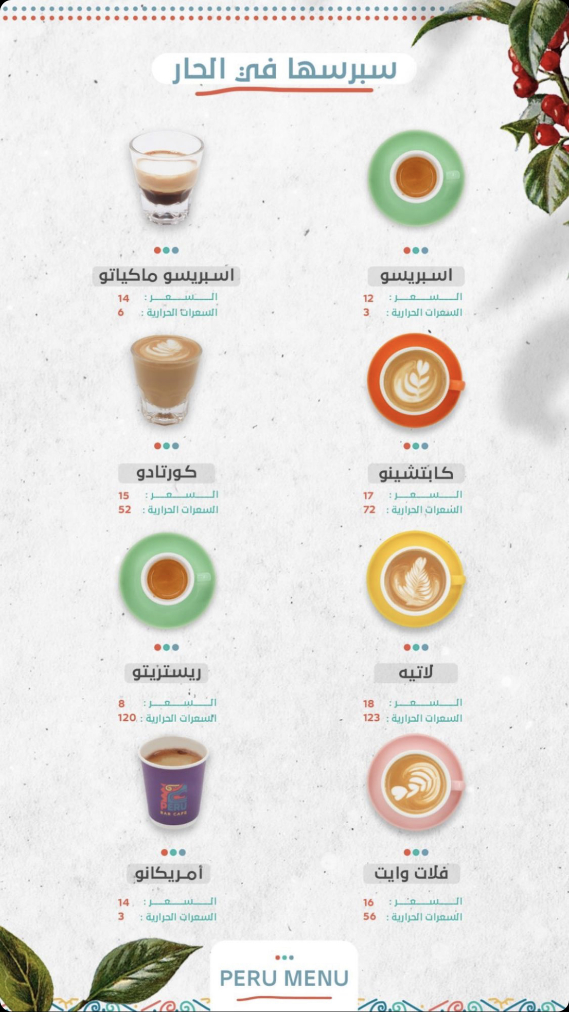 ماأتوقع راح تلقى مقهى يقدم موهيتو وخلطات باردة بالجودة اللي تُقدم في مقهى بيرو. الجلسات طيبة والحلى لزيز. القهوة من محمصة ميلبا من مدينة ملبورن باستراليا. (مدينة القهوة الأولى عالميا) ومنها بدأت شخصيا الدخول في عالم القهوة أثناء دراستي هناك! ??
