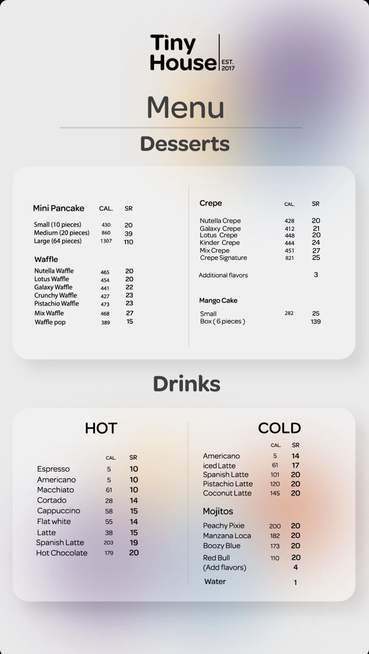 منيو كافيه تايني هاوس بالمدينة
