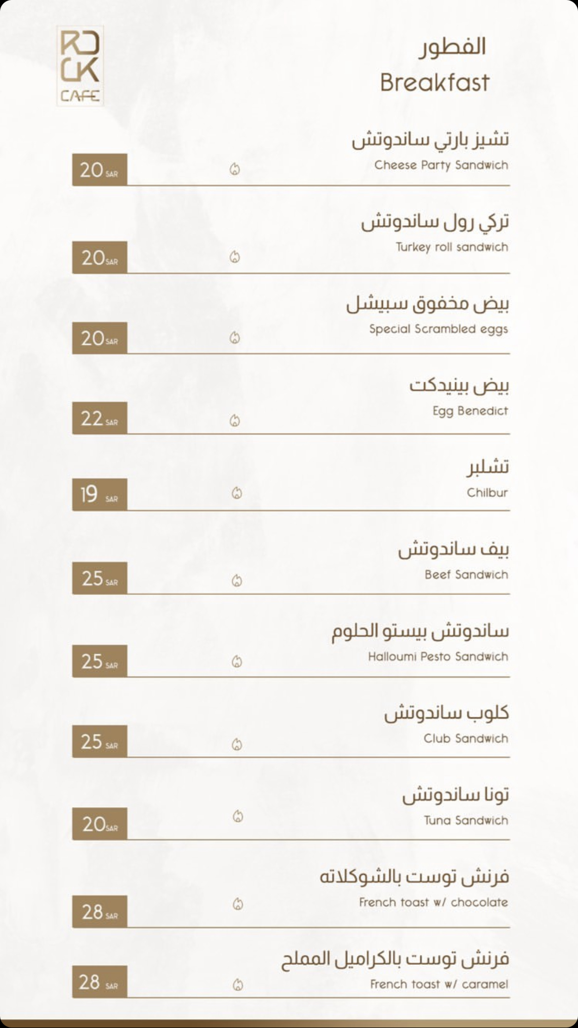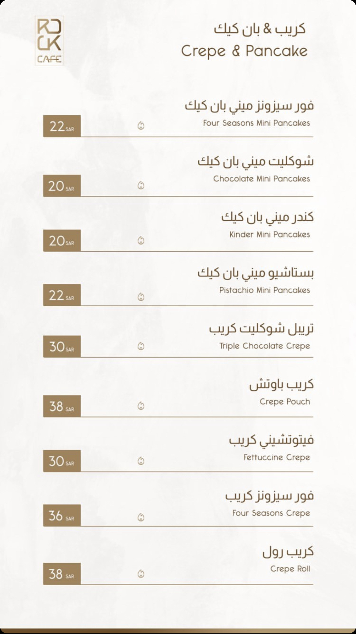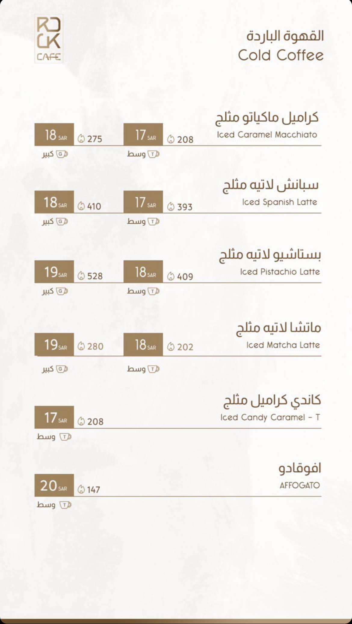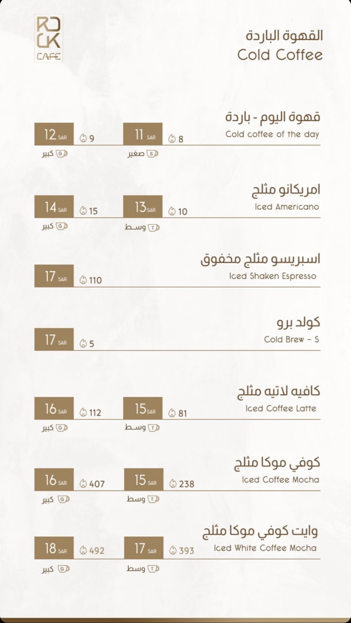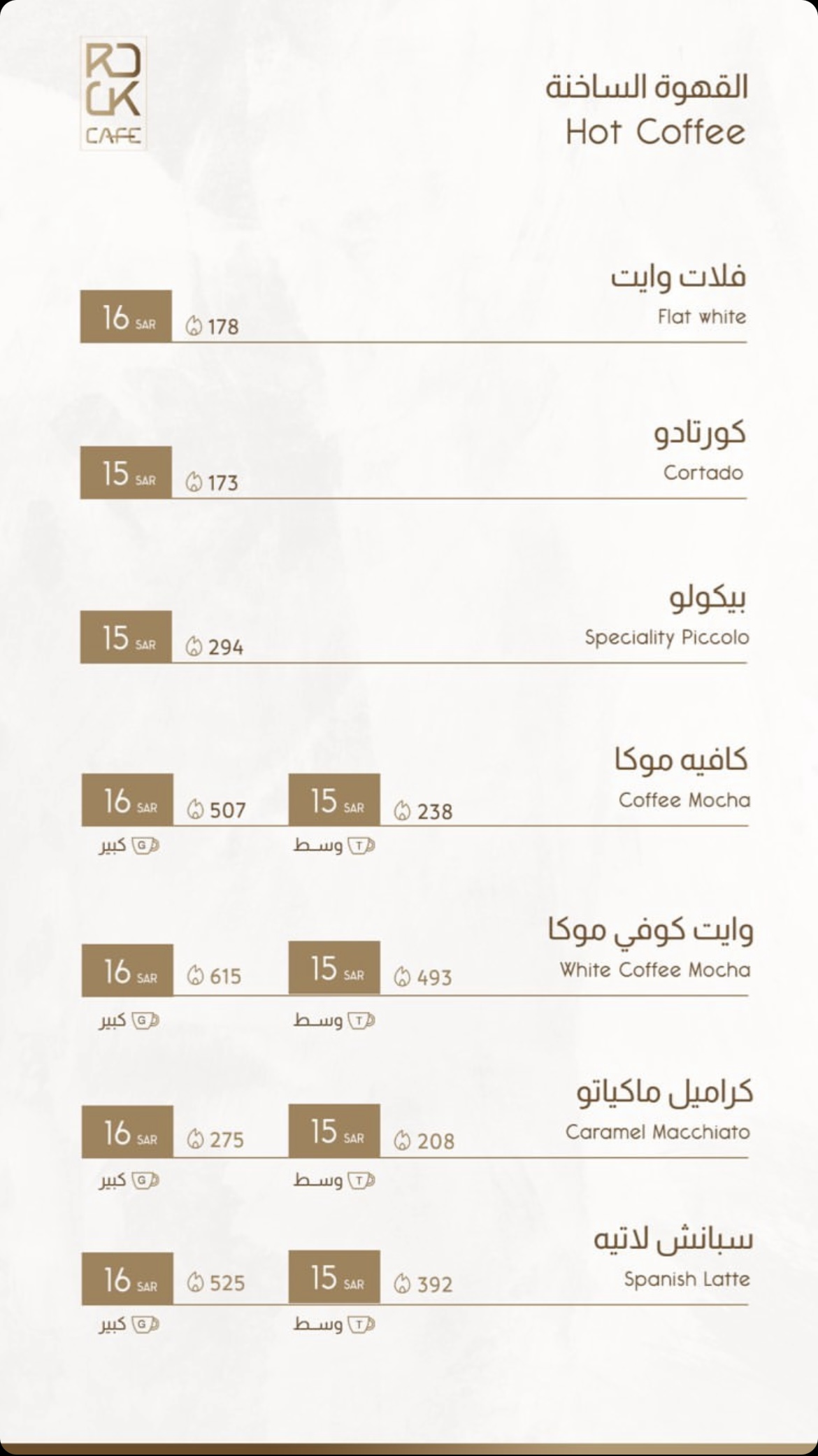 روك كافيه فيه جلسات داخلية للعوائل مافيه بارتشن فيه دورات مياه وللشباب جلسات داخلية وخارجية .. في مسافة حلوة بين الجلسات في قسم العوائل يعني ماهو مزحوم ولا الجلسات قريبة جدا من بعض يكون مقفل بين الساعه ١ ل ٤ العصر .. اللاتيه عندهم ممتاز والبراوني كان طعم .. وعندهم أشكال متنوعة من الحلى ويقدمو خدمة شحن الجوال ب توفير ستاند فيه شواحن للجوالات يعني تحط جوالك ع الستاند وينشحن الجوال