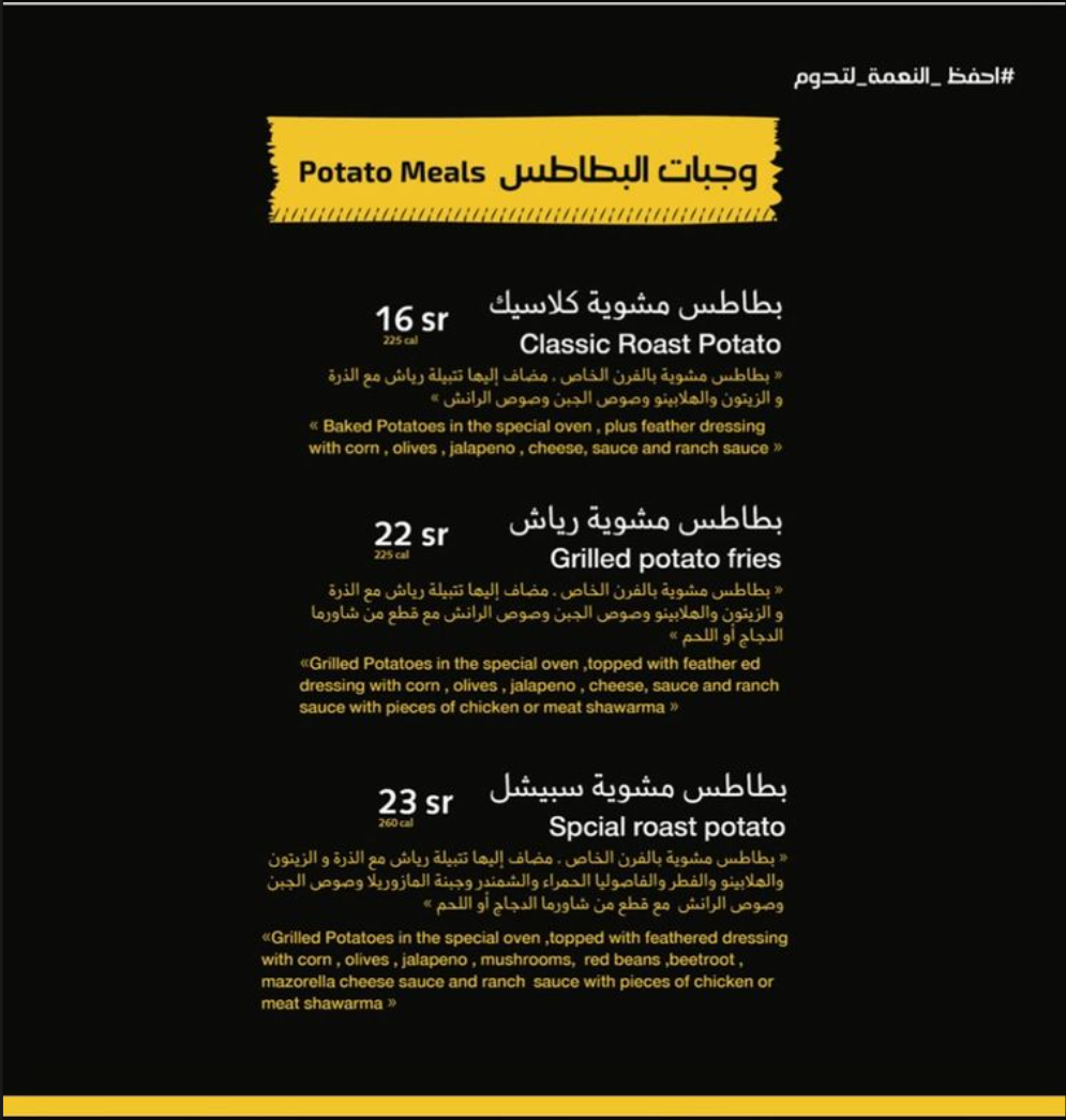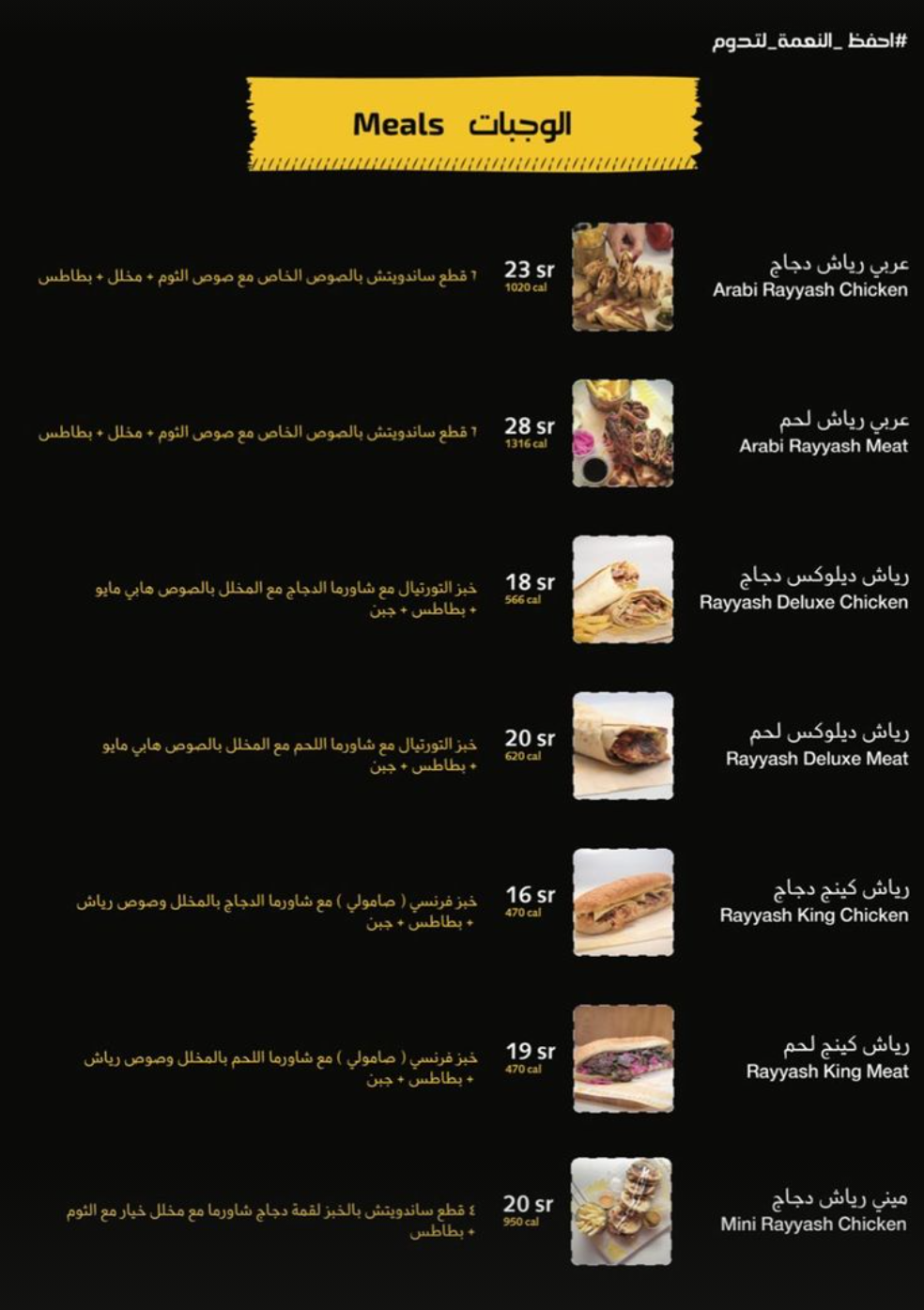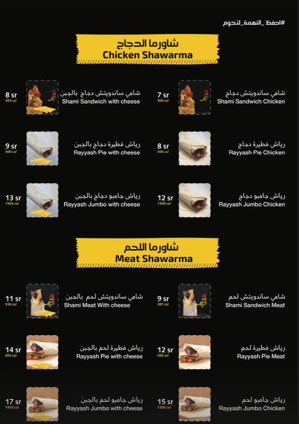 منيو شاورما رياش بالمدينة