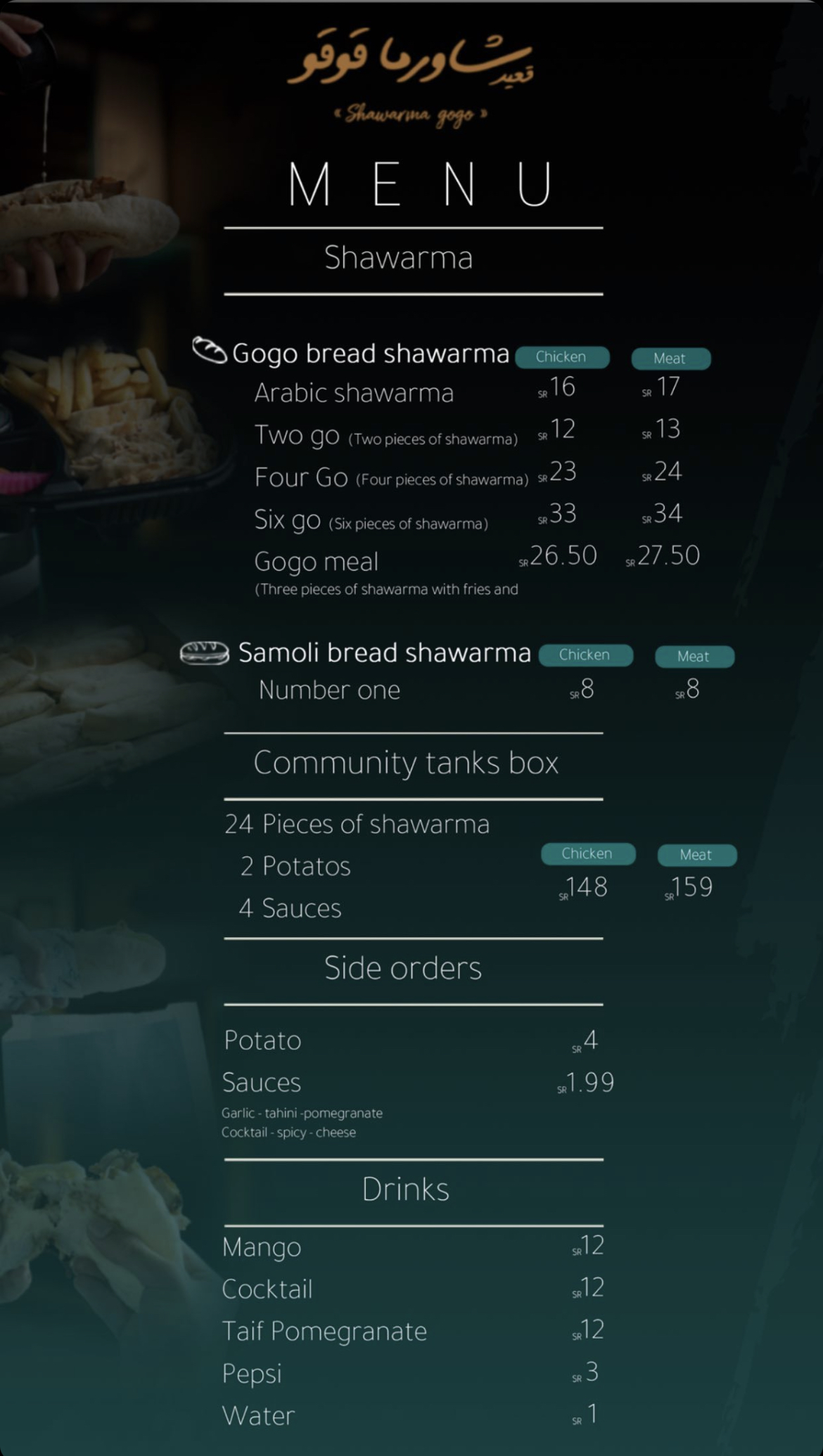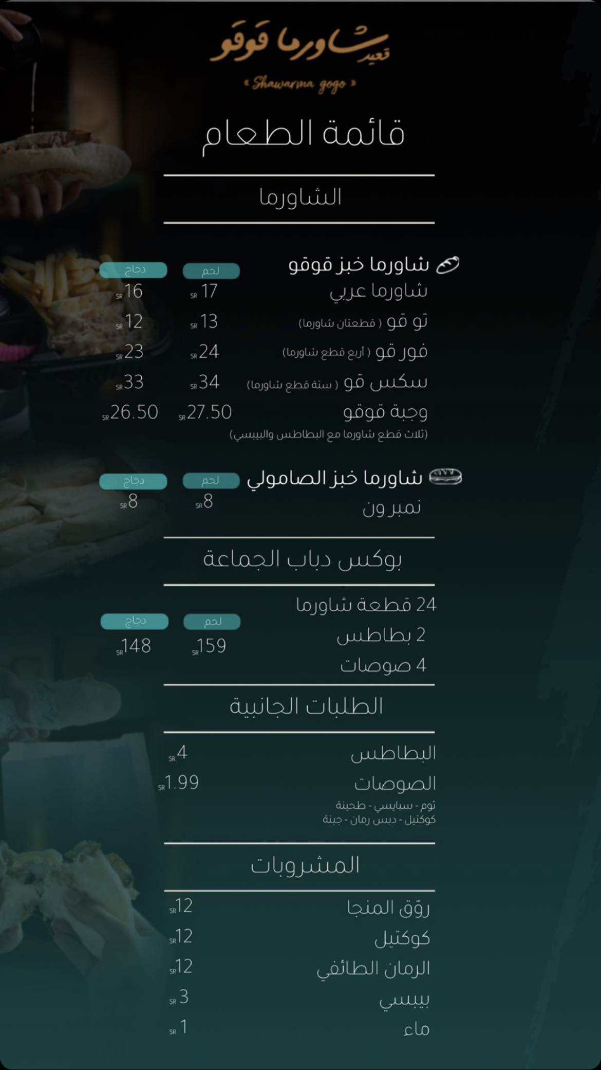 منيو شاورما قوقو بالمدينة