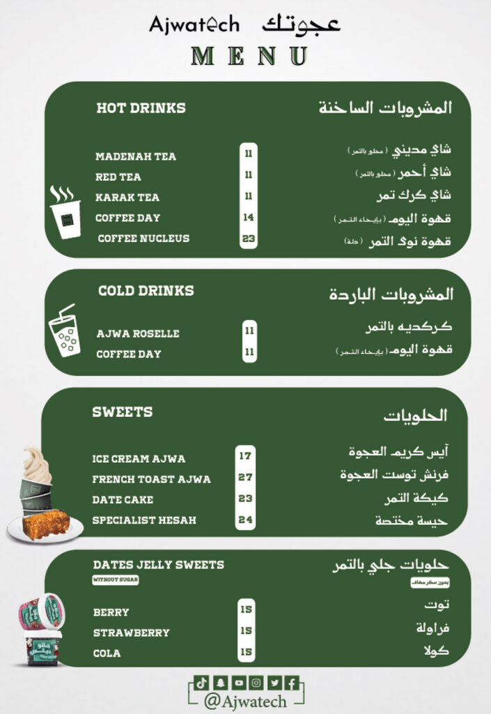 النوع: مقهى مختص بمنتجات مصنوعة من التمور