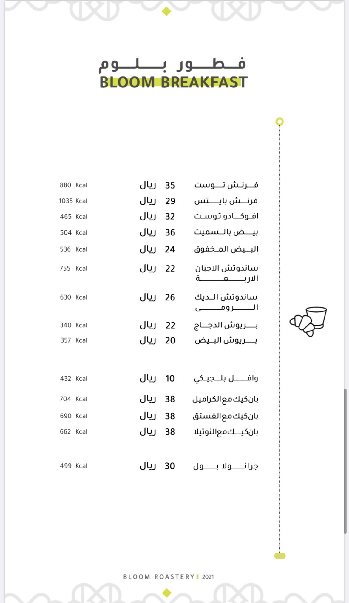 منيو كافيه بلوم روستري بالمدينة