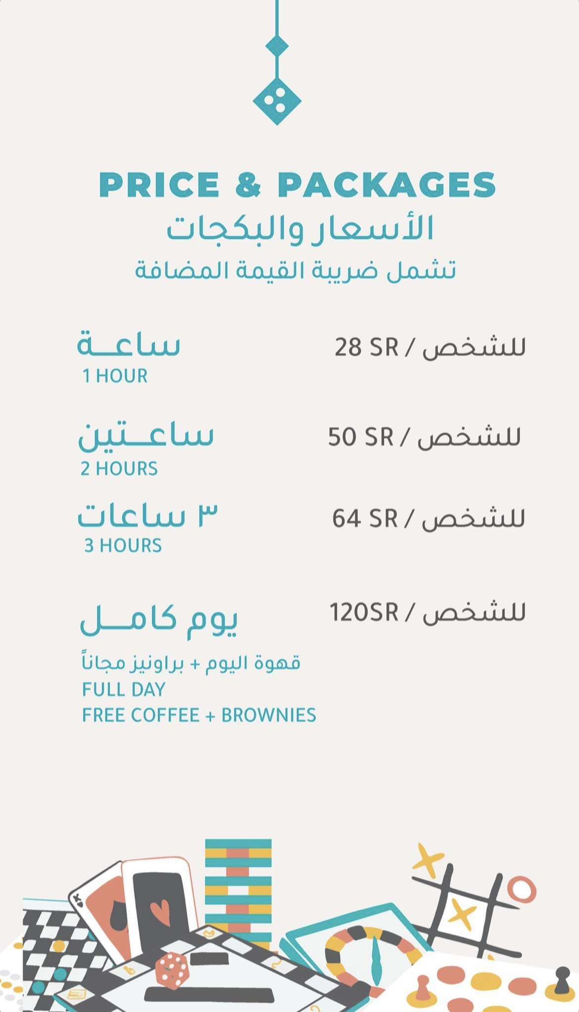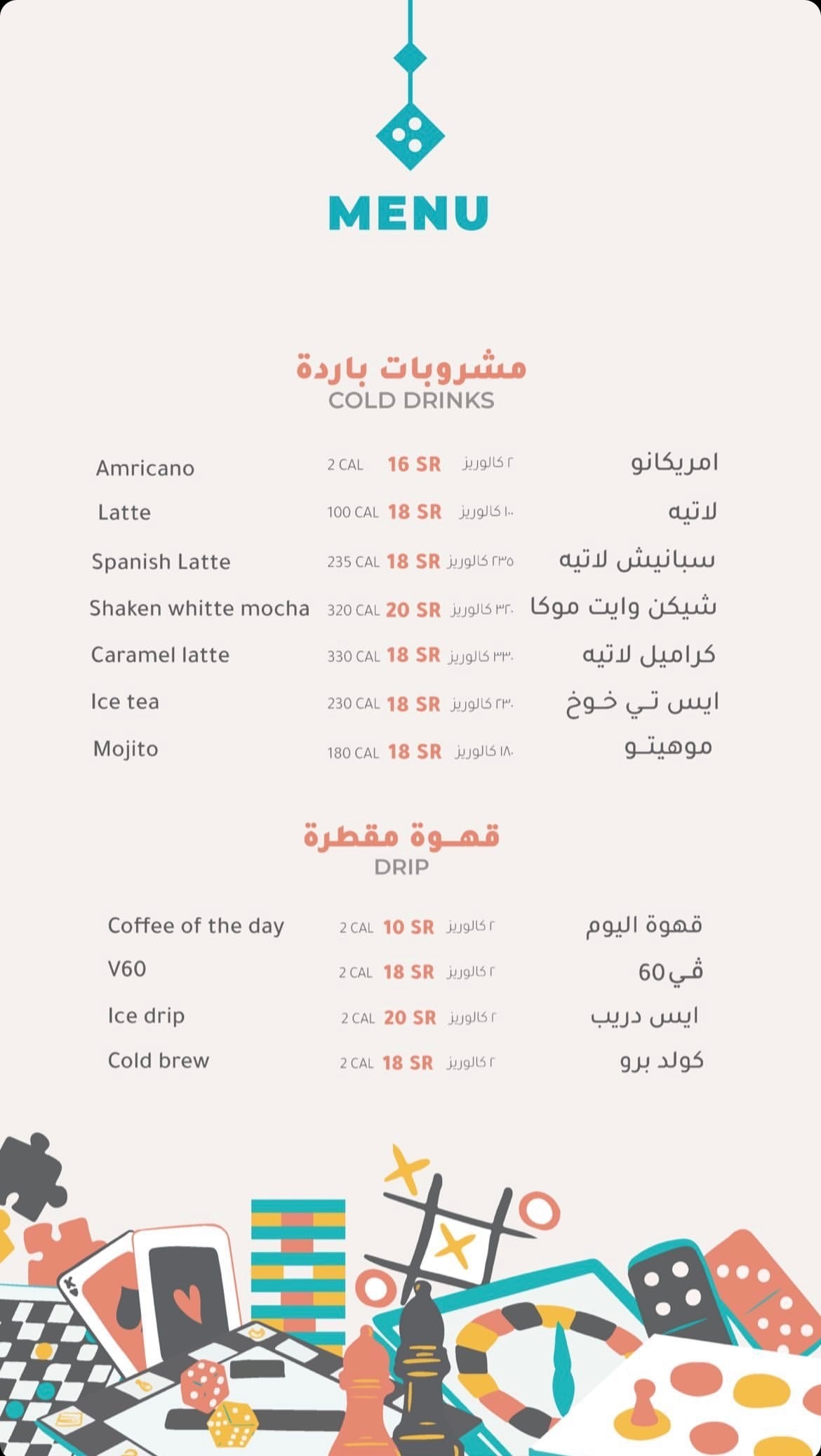 النوع: مقهى ومساحة إجتماعية للعب بالألعاب الورقية والتركيب (يوجد أكثر من 300 لعبة)