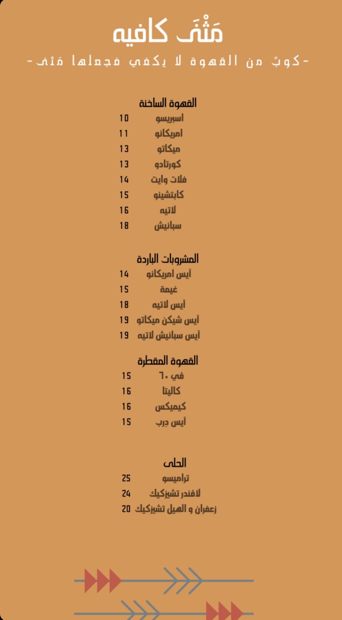منيو كافيه مثنى بالمدينة