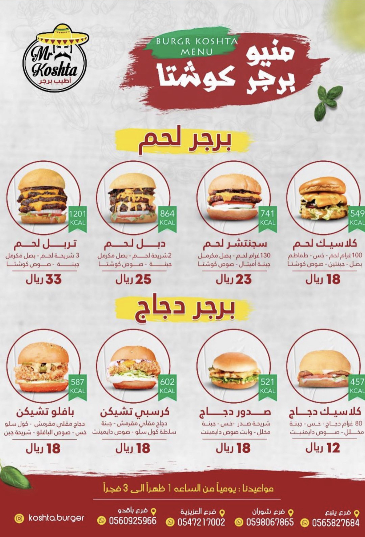 منيو كوشتا برجر بالمدينة