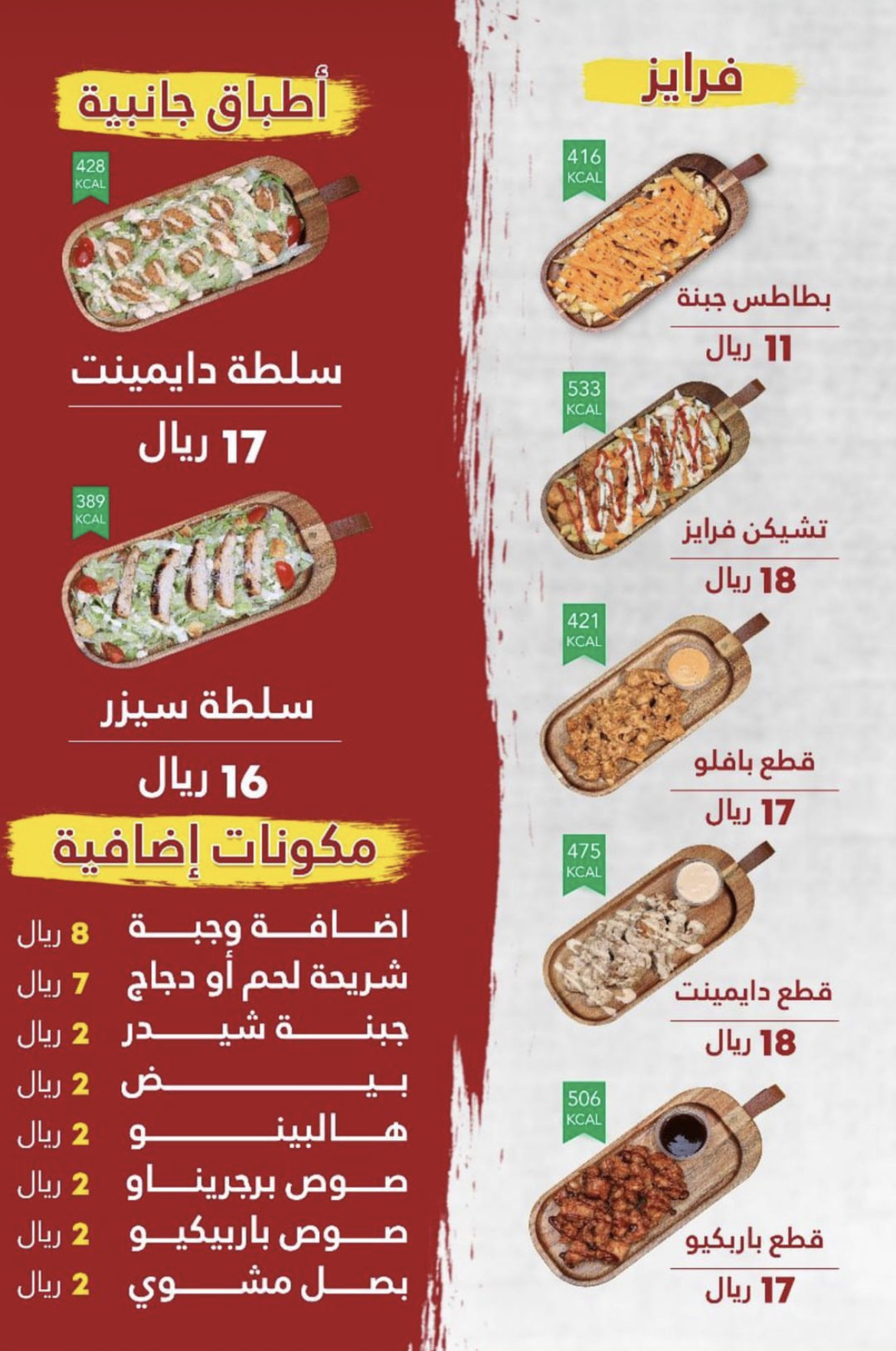 الاكل إجمالا لذيذ خاصة وجبة الفاميلي ب١١٤ ريال (٦ برغر بين دجاج ولحم وتقدر تخليها نوع واحد- صحن بطاطس – صحن دجاج كرسبي- وصحن دجاج كرسبي وبطاطس مكس. وكلها يضع لها صوص – لذيذ لكن زيادته قد تفقده لذته- ٦ قوارير مشروبات غازية) من تجربتي انصح بتقليل الصوص لأدنى حد ممكن واللي يحبه بزيادة الله يهنيه وبالعافية