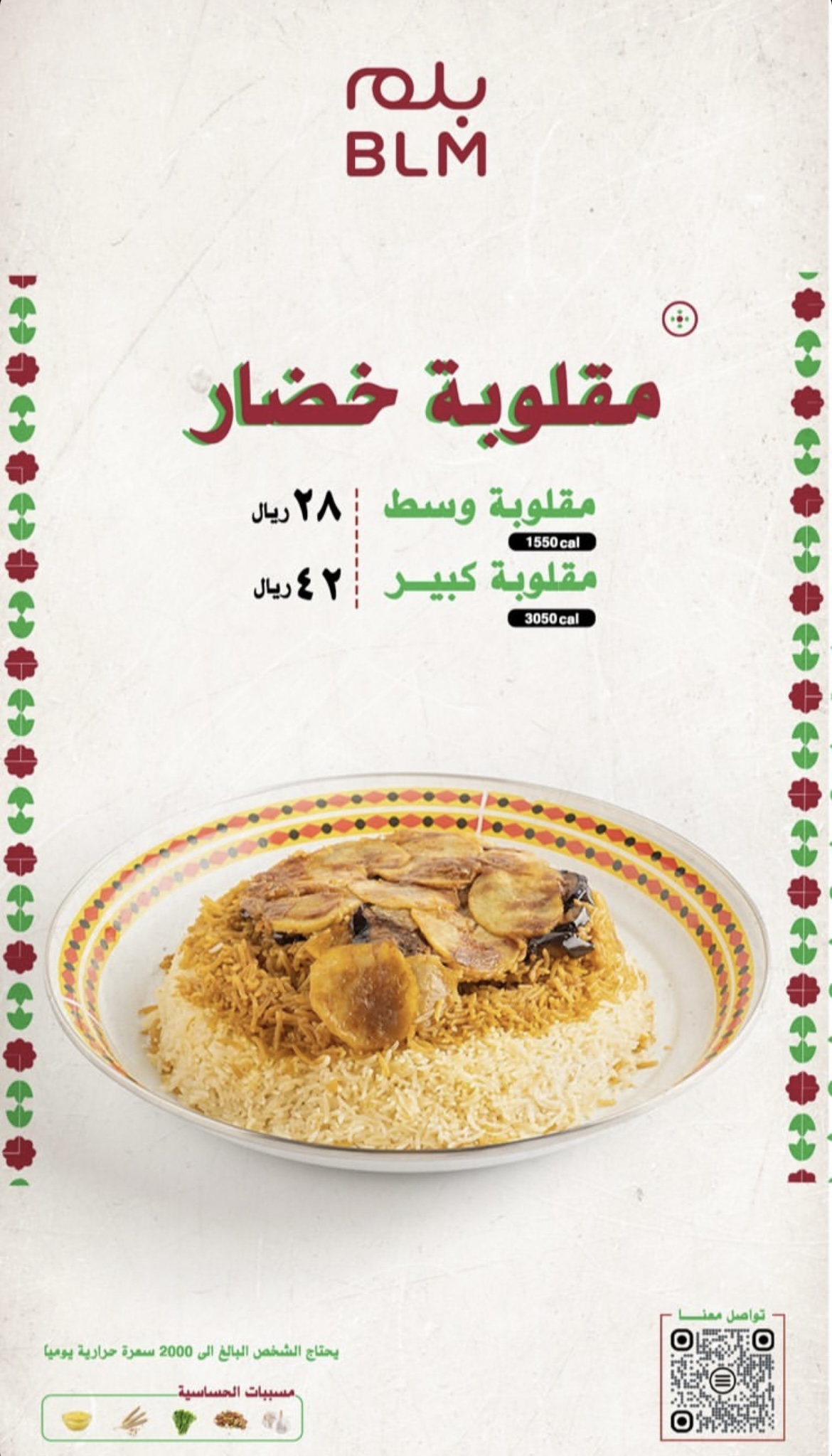 الصراحه من الذ مطاعم المقلوبه مقارنة مع المطاعم خارج المدينه لكن كميه الزيت اوڤر و قالنا الموظف تقدرون تطلبون زيت قليل ف حبيت مراعاة اصحاب الدايت خاصه لهذا الشي الله يعطيهم العافيه و من نجاح لنجاح ان شاءالله ?