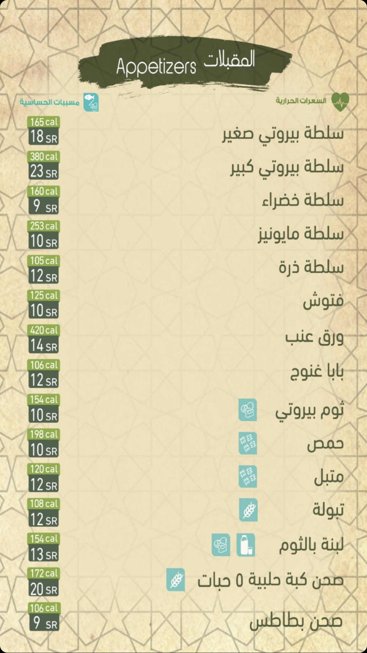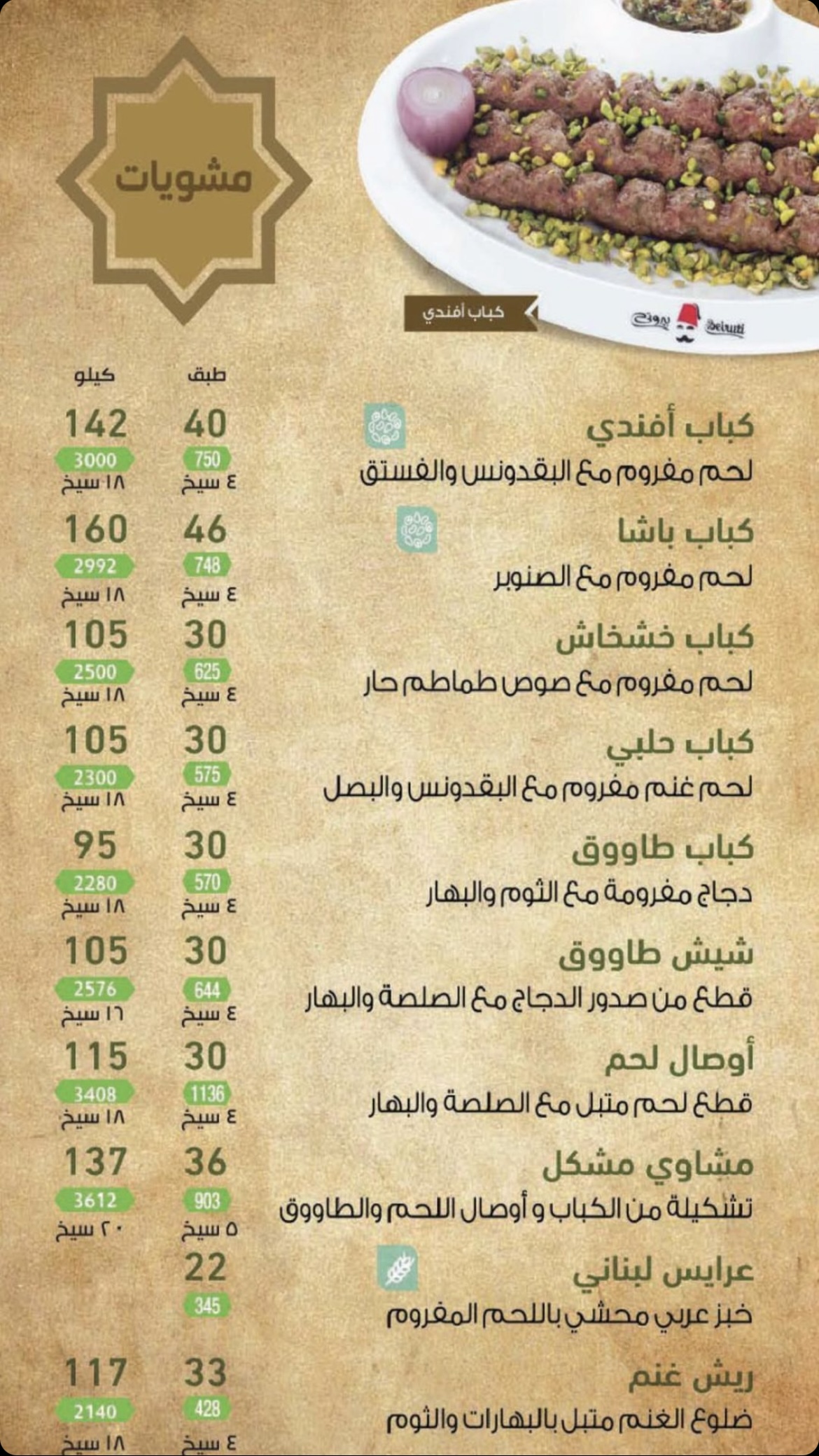 منيو مطعم بيروتي بالمدينة