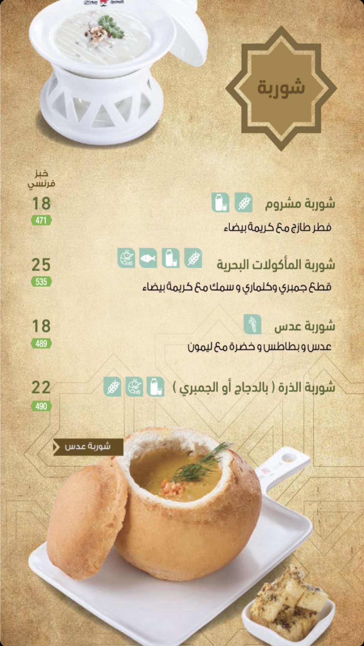 الشيء الوحيد المميز لديهم هو الشوربات وطريقة تقديمها في الخبز الفرنسي.
