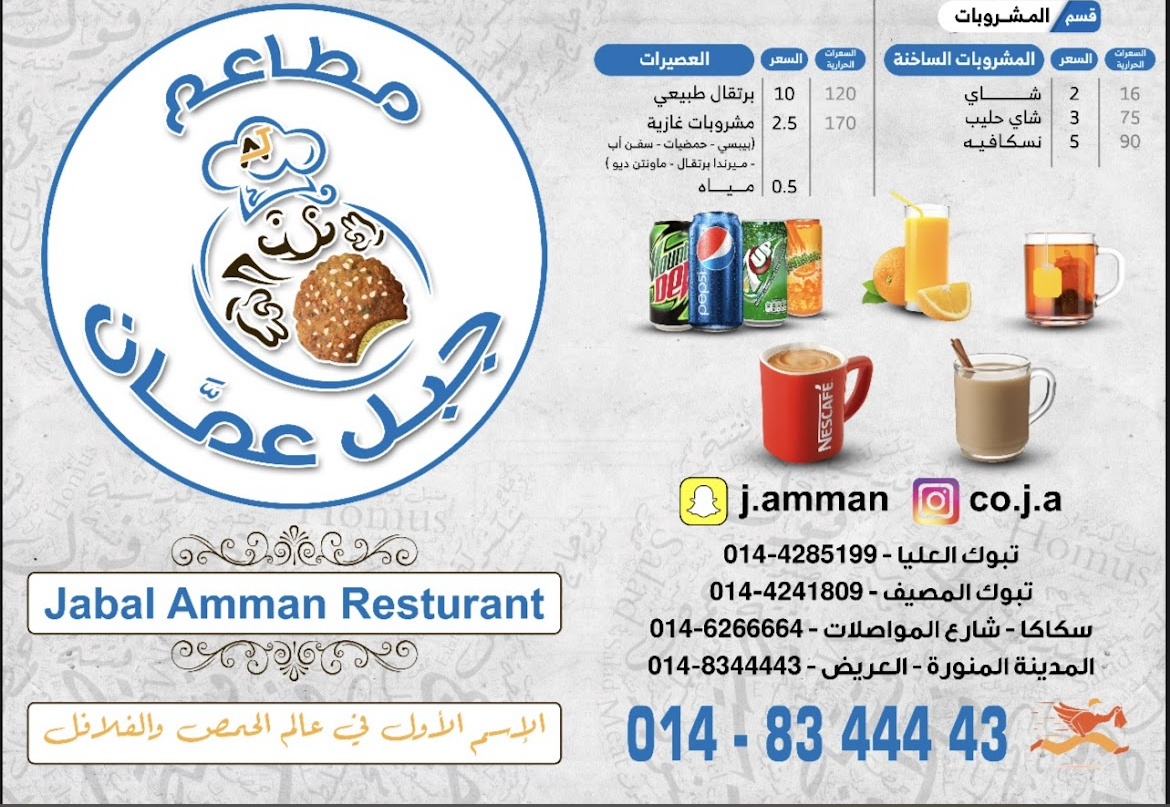 منيو مطعم جبل عمان بالمدينة