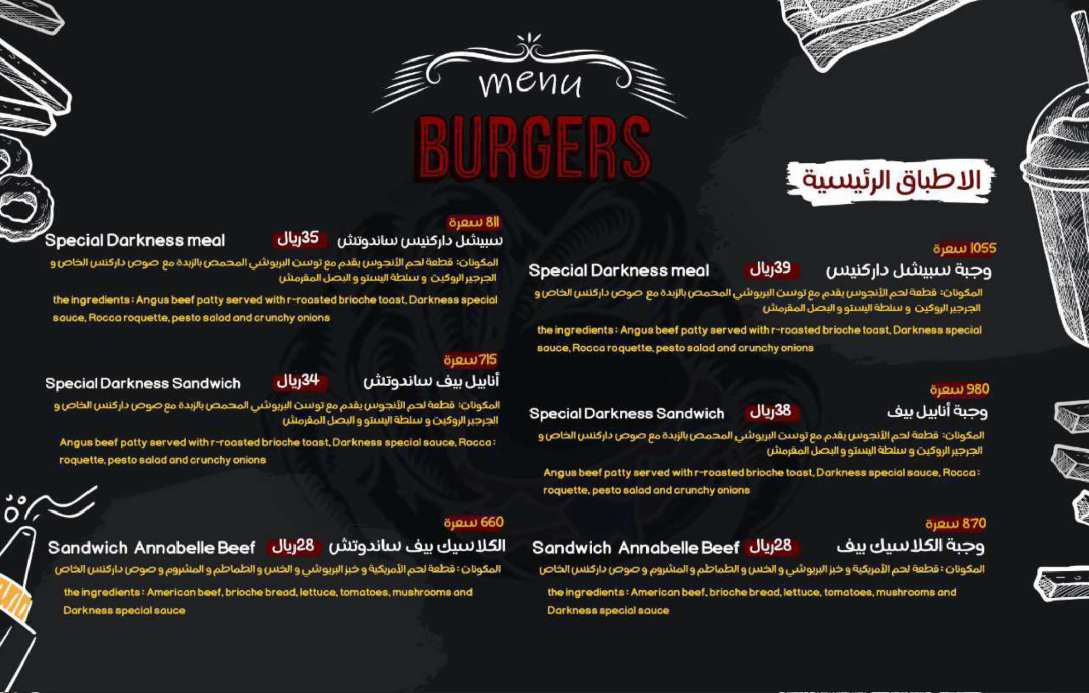 منيو مطعم داركنس هاوس بالمدينة