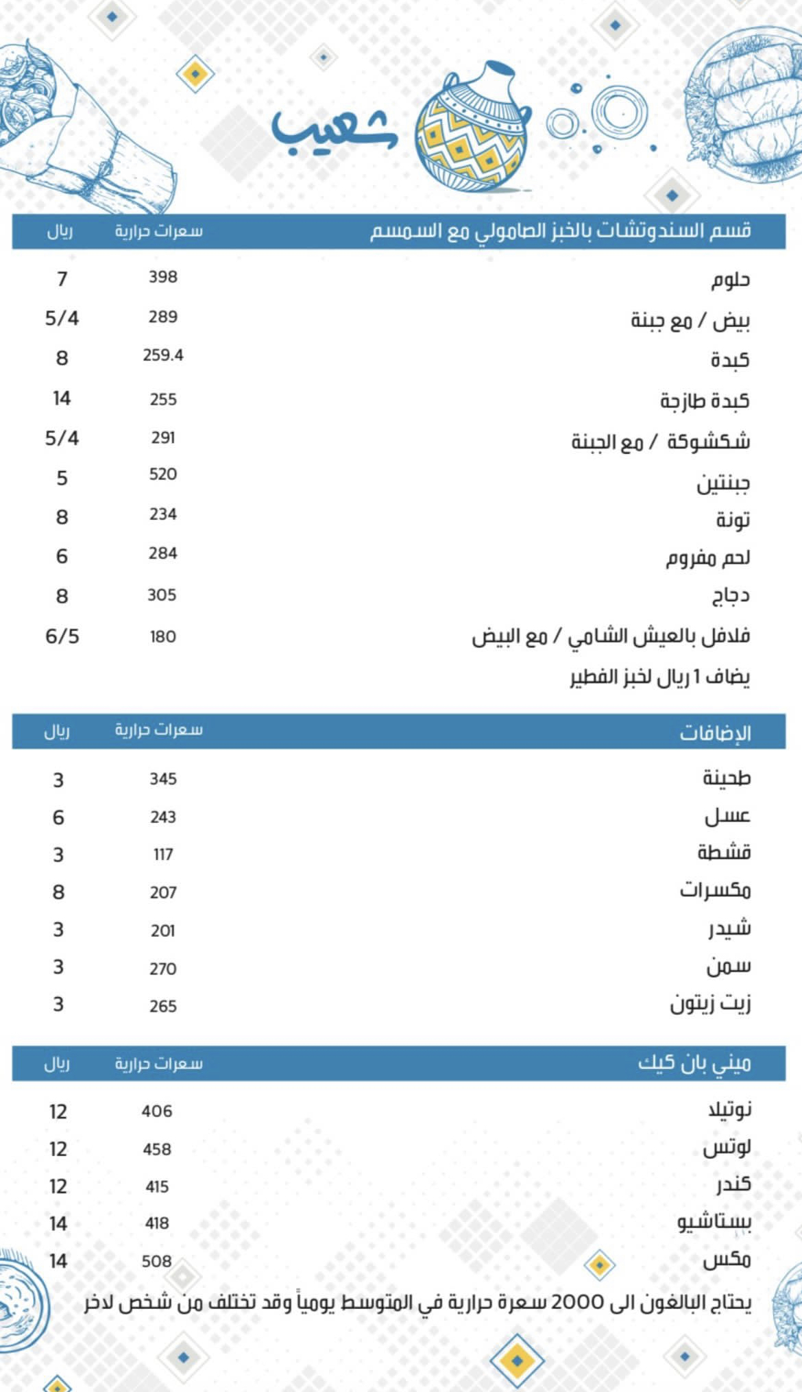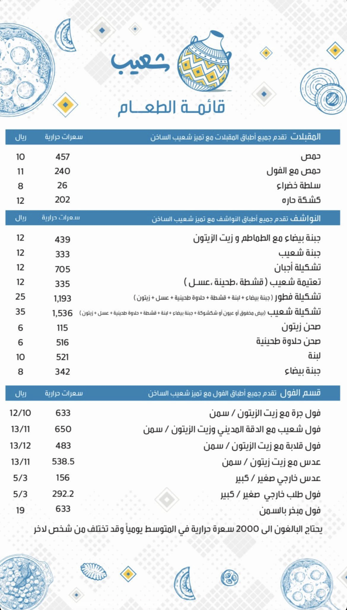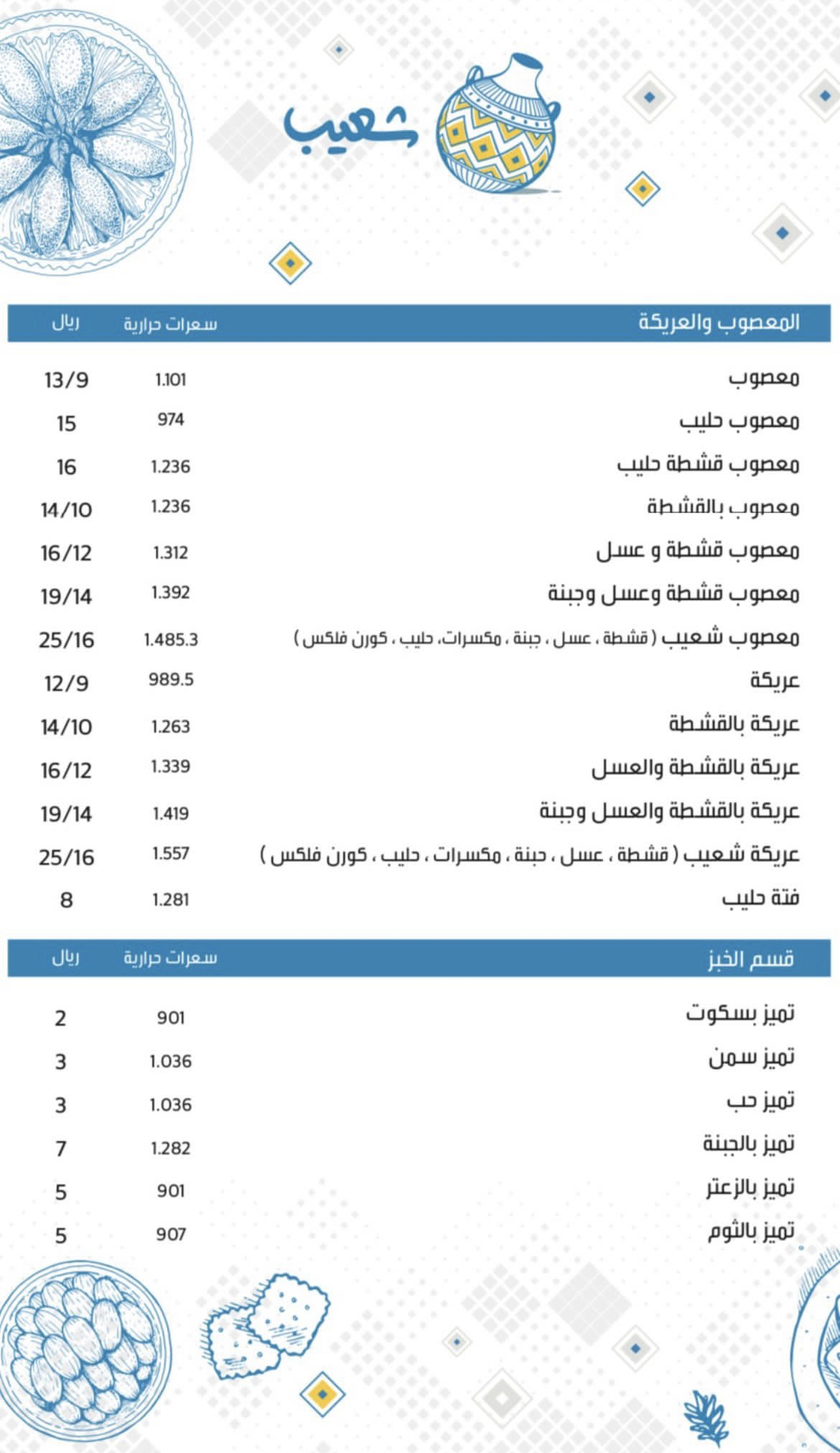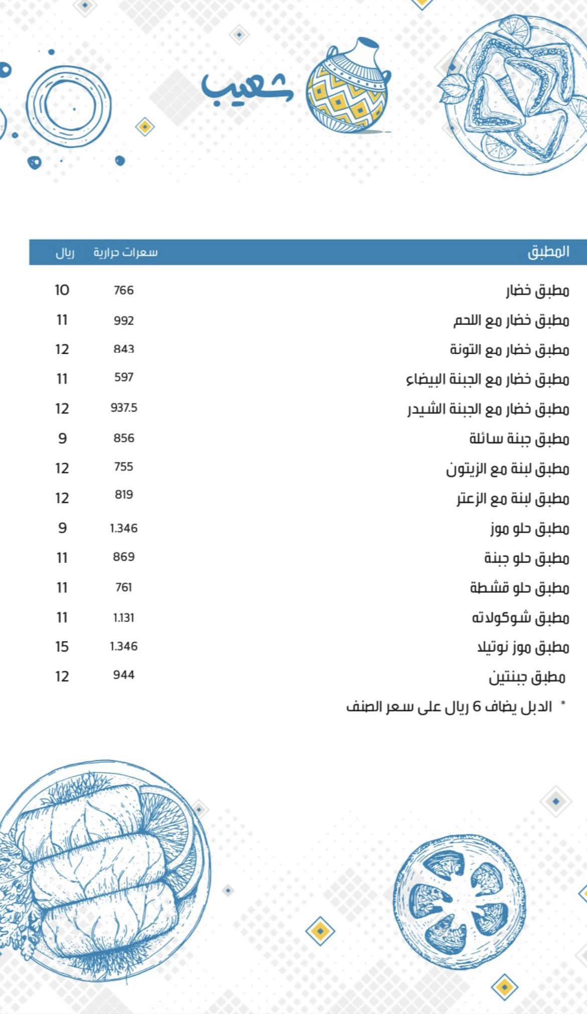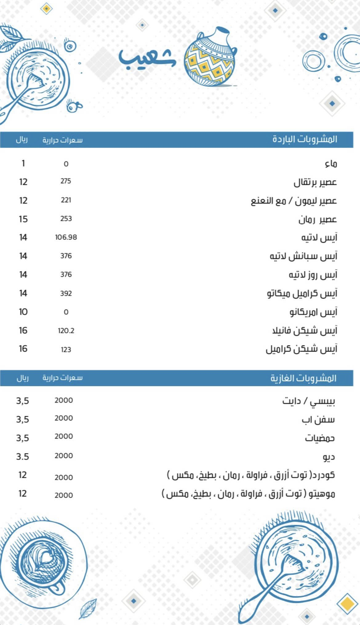 منيو مطعم شعيب المدينة