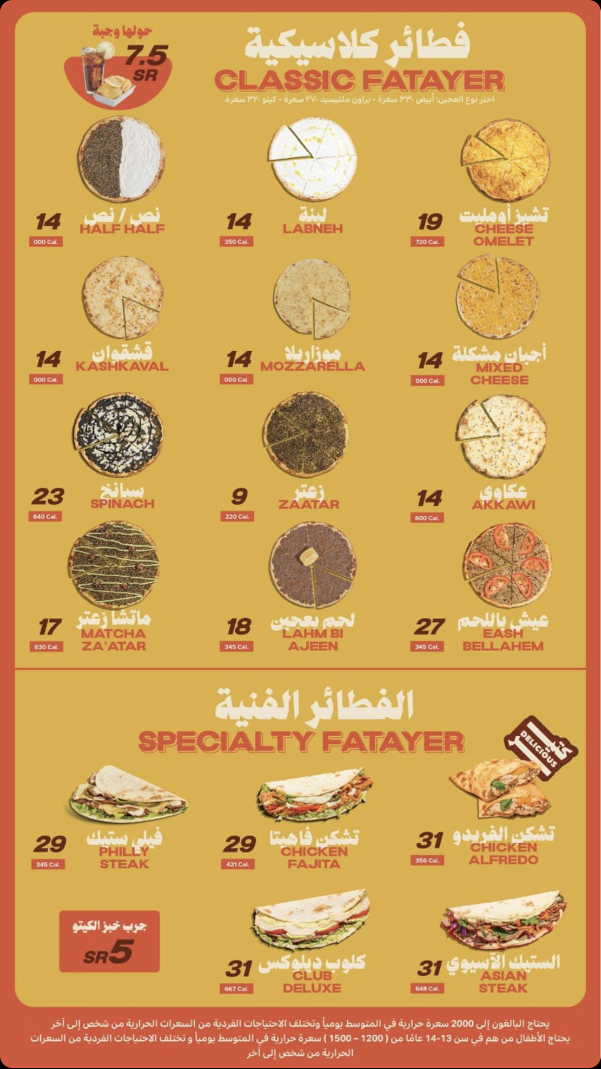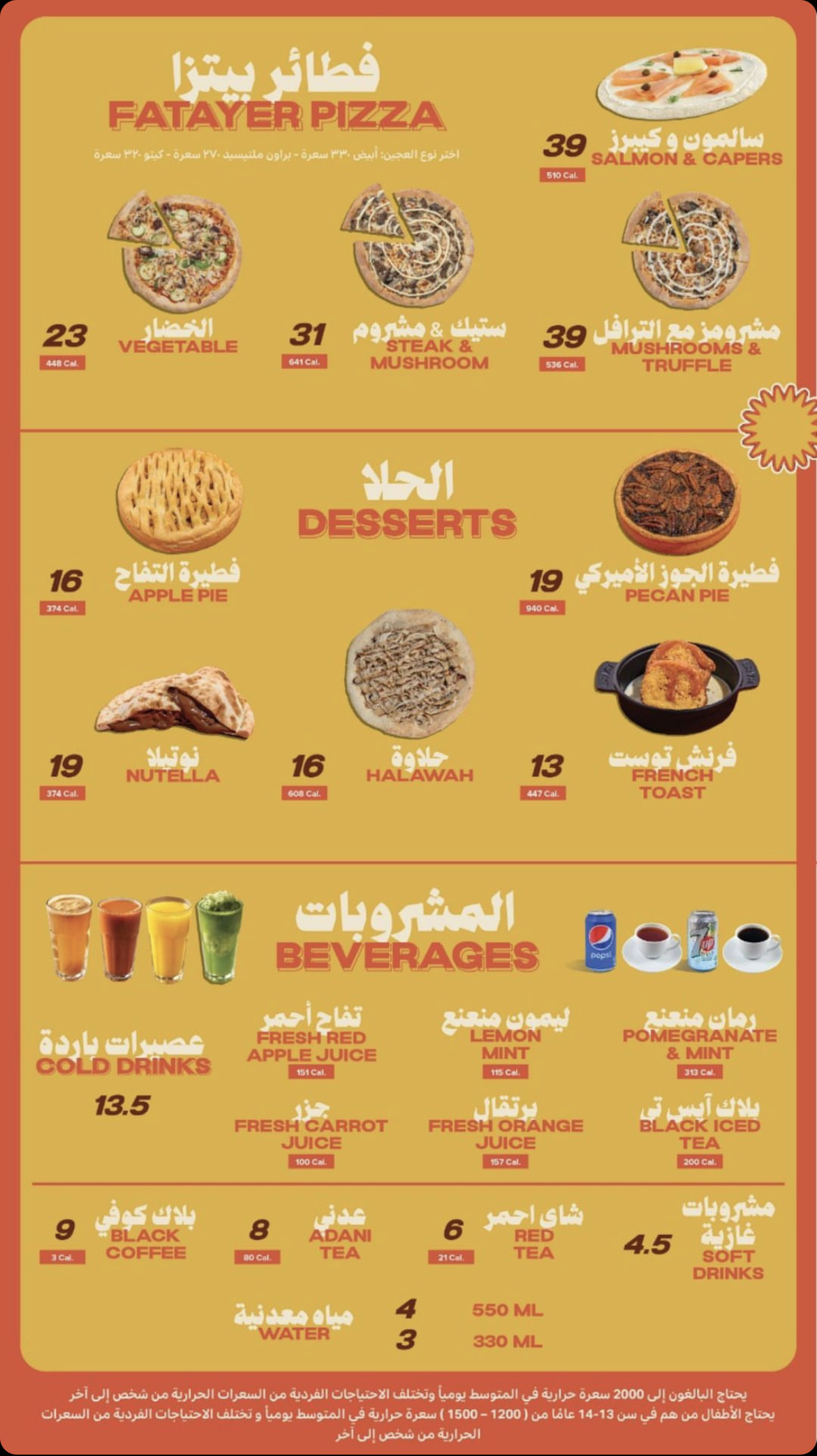 النوع: مطعم متخصص بعمل الفطائر المبتكرة والكلاسيكية، ويوفر خيارات كيتو ونباتية