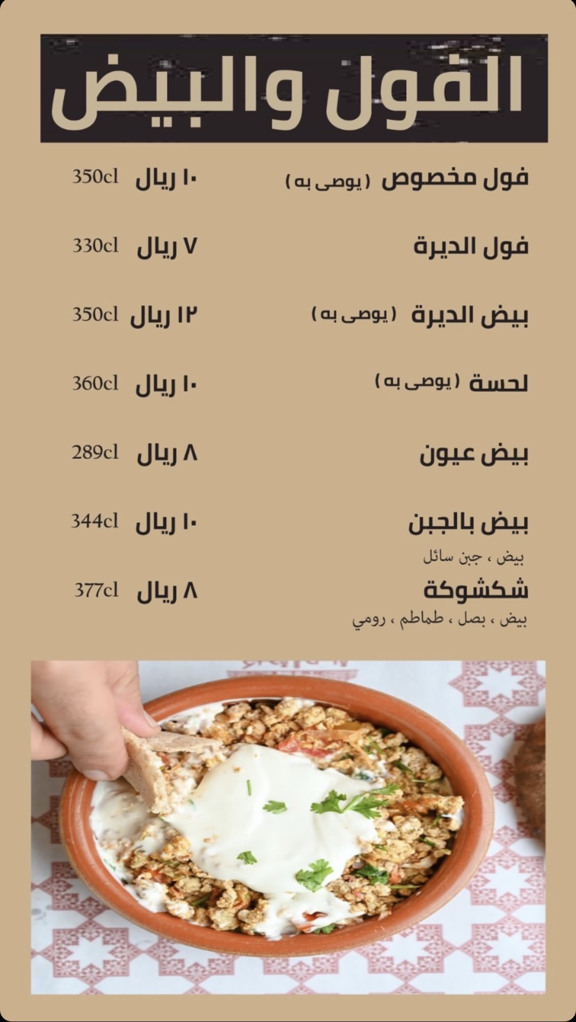 زيارة الصباح طلبت فول الديره عريكة الشاهي والماء مجاني يشكرون علية..